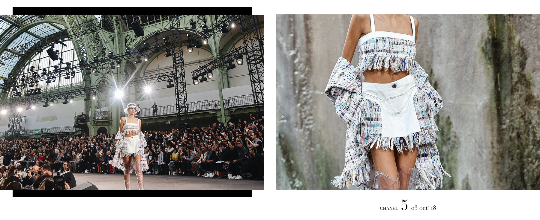 Jede Saison wird mit Spannung das neue Chanel-Universum erwartet, welches sich Karl und sein Team ausgedacht haben. Das Oberthema zieht sich dann meist kohärent durch die gesamte Kollektion. Letzte Saison ragte eine CC  gebrandete Rakete an die Spitze des Grand Palais und die Models trugen Glitzerboots im Chanel-Weltraum. Dieses kurze Entführen aus dem Alltag auf magische Weise, hinein in eine ganz andere Welt, ist es letztendlich auch, was die Show von Chanel so besonders macht.