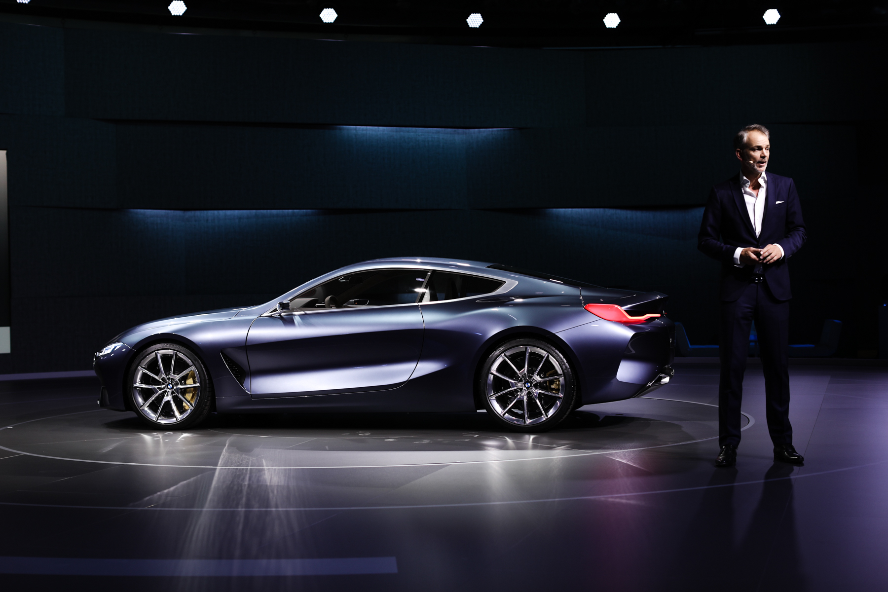 Als der neue 8er schließlich hereingefahren wird, bekomme ich selbst ich Gänsehaut. Ein Fahrzeug vollkommen und in leuchtend blauer Perfektion lässt auch mich nicht kalt. Das Ergebnis zeigt die spannende Symbiose aus Sportlichkeit und modernem Luxus – durch & durch eine High-End-Fahrmaschine.